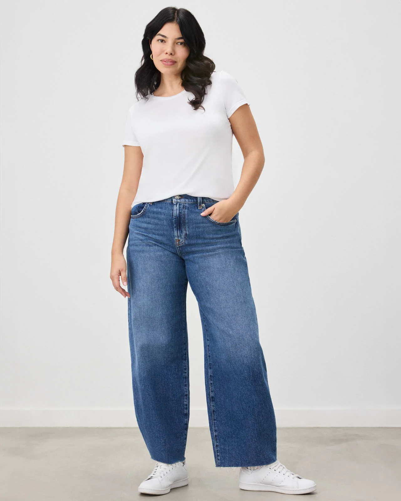 Our tried and true classic -- a basic women's crew neck tee that feels anything but basic. Crafted from an ultra-soft, lightweight cotton, and modal jersey blend for a fits-just-right drape and a perfectly tuckable shirttail hem.