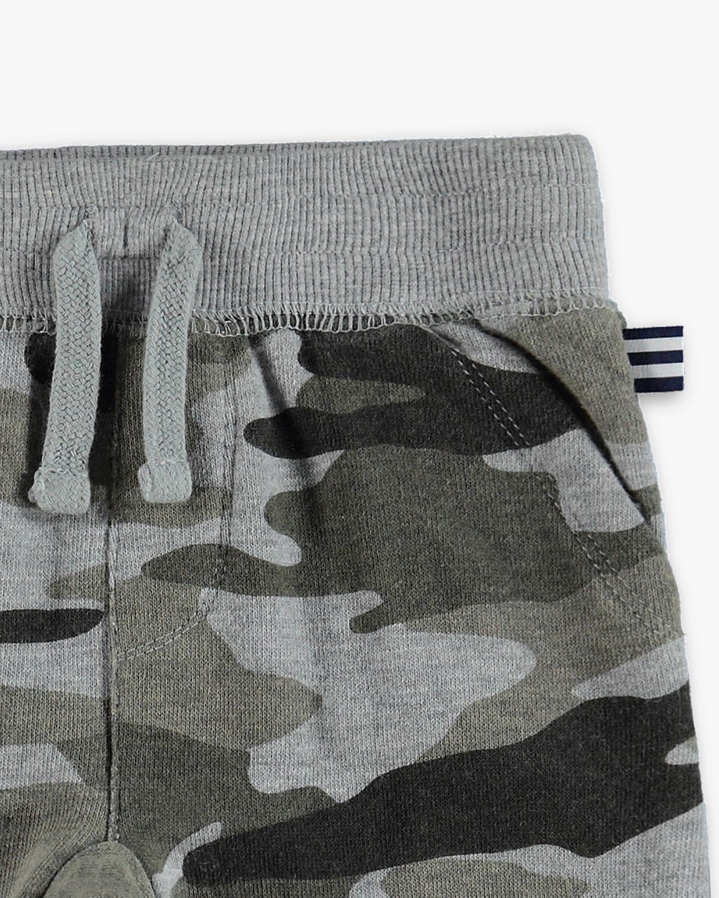 Classic joggers made with super soft knit in camo. Features elastic waistband, ribbed cuffs and pockets. Comfortable and easy to wear wash after wash.