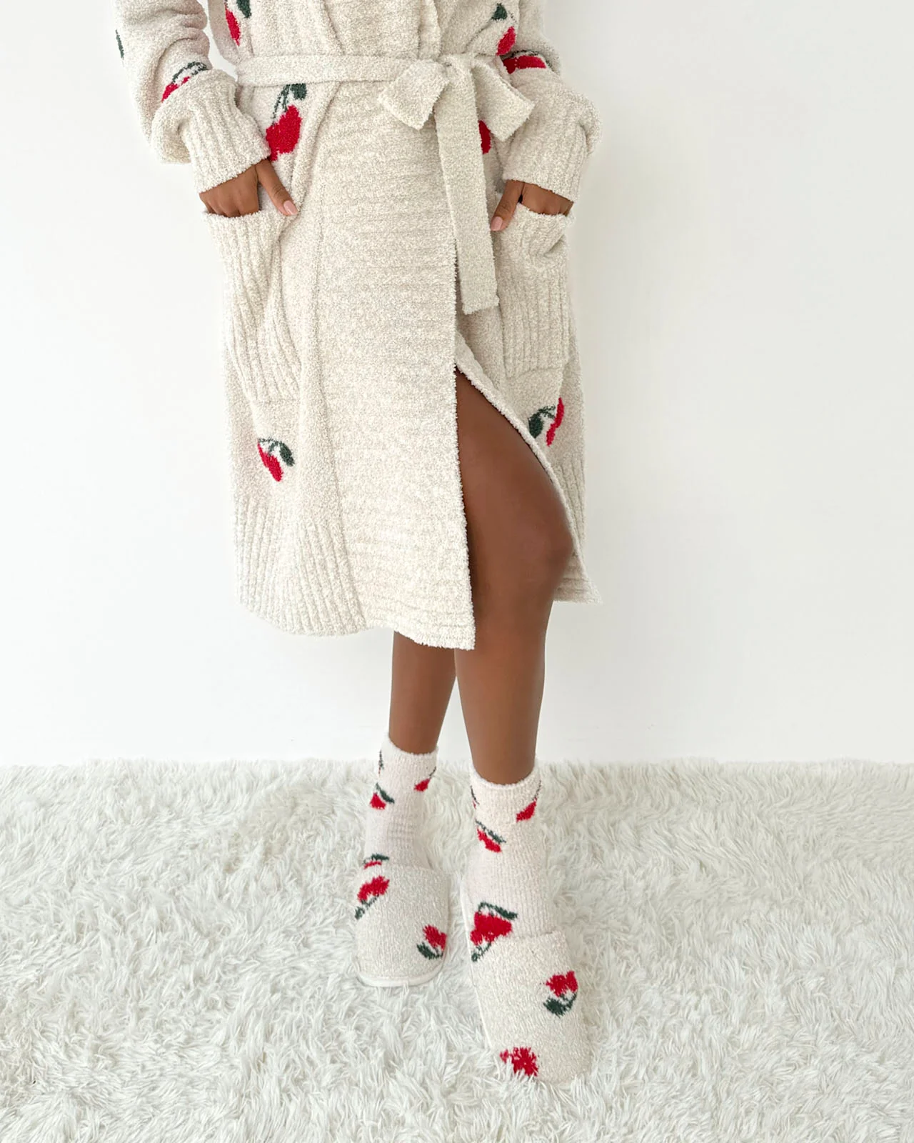 Cherries Cozy Fuzzy Slipper Slide