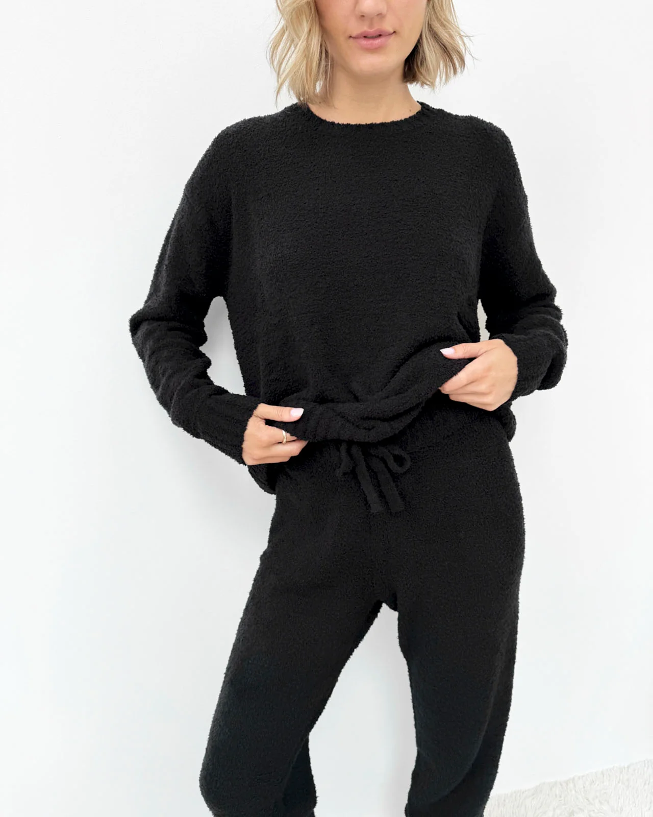 Black Fuzzy Sweater PJ Set