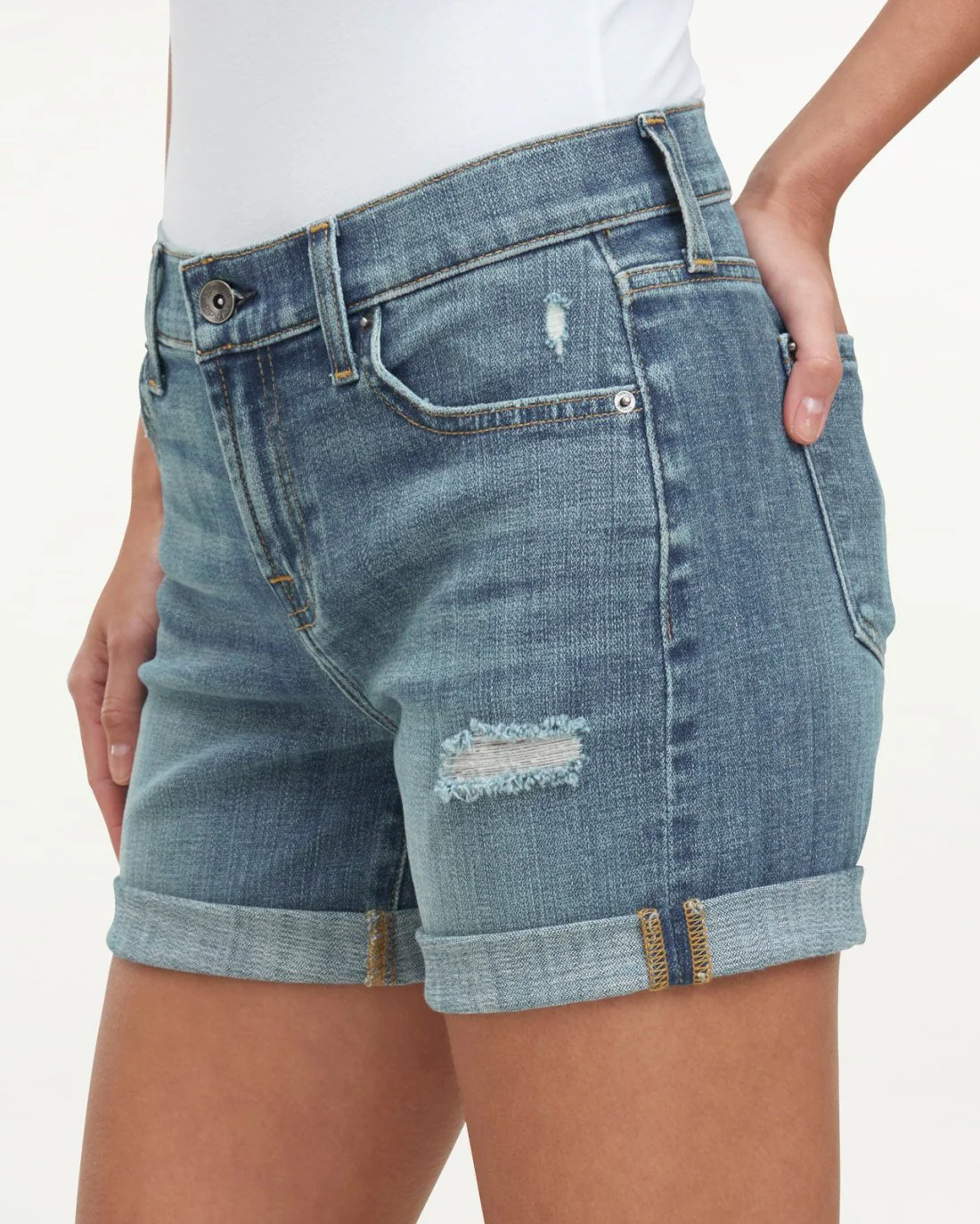 Simple and clean-cut, this denim short has a mid-rise waist that's made for tucking in your favorite Splendid tees. We finished it with a classic foldover hem that teams well with a crisp white sneaker or a minimal slide.