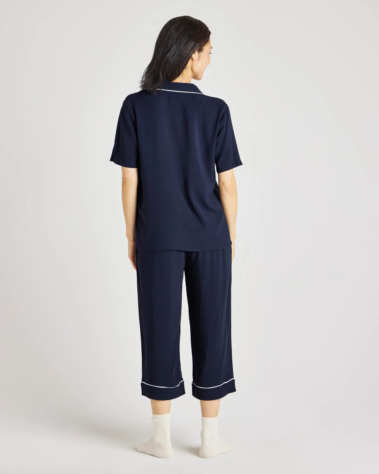 Navy Blazer Notch Top & Crop Pant PJ Set
