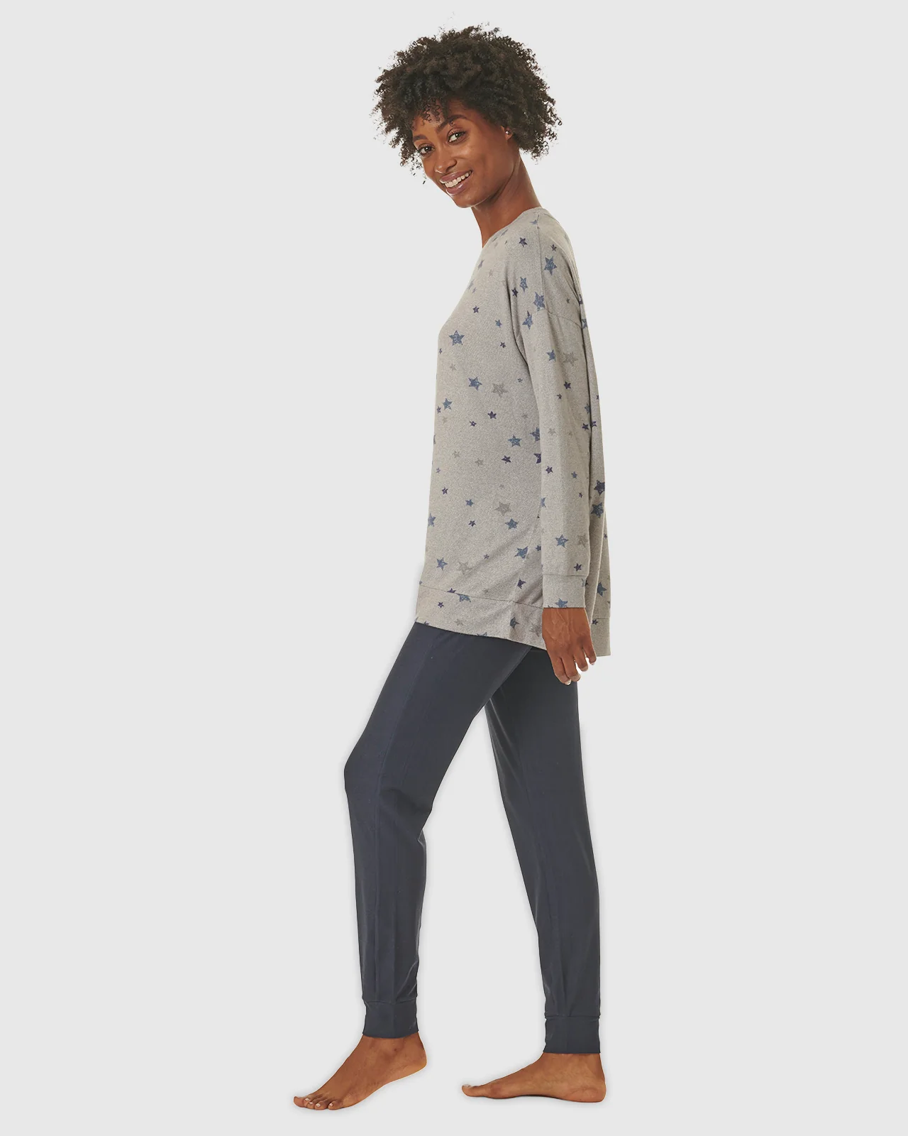 This comfy set includes a soft pullover with slouchy shoulders and a drawstring jogger. Made for all things lounge, it'll become your new favorite pair of jammies.