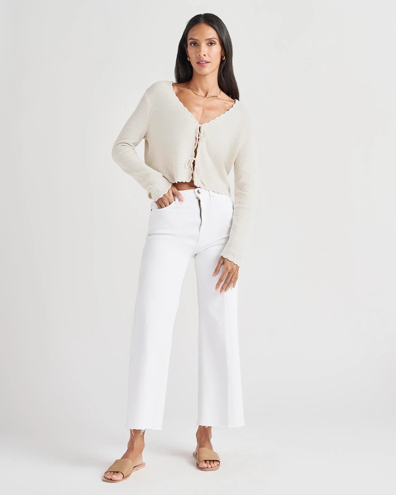 Oh how we love the sweet simplicity of our Wendy Cardigan! Made from out signature Peachskin fabric (it's softness is subtly fuzzy and mimics the feel of our favorite stone fruit!), this long sleeve open cardigan features functional front ties that allow you to wear this cardigan as a layering piece or top. Designed to hit at top of waistband.