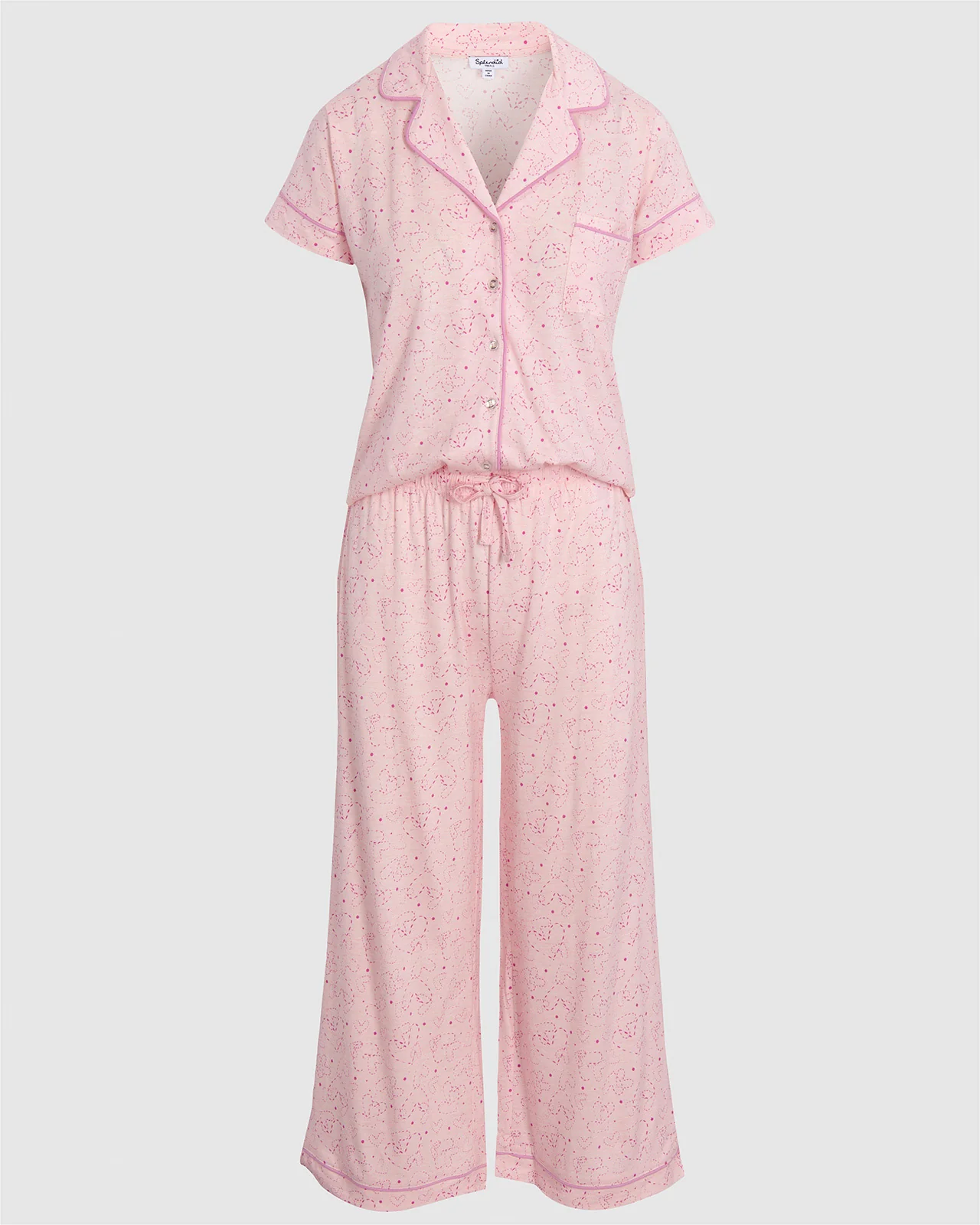 Wilma Notch Collar Wide Leg Sleep Set in Pink Dot Heart